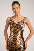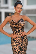 Style PS26257 delivers sultry sophistication with its sleek fitted silhouette and cowl neckline. Crafted in a bold leopard print, the gown contours the figure before flaring subtly at the hem for a timeless, red-carpet finish. Designed for confidence and allure, this look defines modern glamour.
