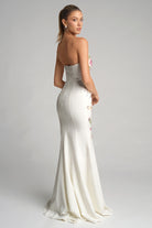 Style PS26286 showcases timeless sophistication with a touch of romance. The gown features a strapless neckline and a figure-hugging silhouette that beautifully accentuates the curves. Intricate floral embroidery frames the bodice and cascades down the front, enhancing the shimmering pastel fabric with a delicate, feminine charm. The back of the gown flows seamlessly into a smooth train, creating a graceful finish that exudes elegance from every angle.