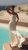 Style PS26092 embodies refined sophistication with an air of modern minimalism. The gown features a strapless structured bodice, designed with a softly curved neckline and intricate lace embroidery that lends delicate texture and dimension. The corseted construction defines the waist before flowing seamlessly into a sleek, satin mermaid skirt that drapes effortlessly to the floor. With its subtle sheen and flawless tailoring, this gown highlights the figure with polished elegance. Perfect for those drawn to understated glamour, it strikes the ideal balance between classic grace and contemporary allure.