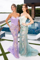 XO197 is a stunning two-piece gown that combines modern design with romantic detailing. The structured corset top features defined boning and delicate floral embroidery, creating a sculpted and feminine silhouette. The coordinating fitted skirt is crafted from sheer embroidered tulle, adorned with intricate 3D appliqu?s that flow gracefully to the hem. Finished with a lace-up back, this two-piece ensemble offers a perfect balance of elegance and allure for any special occasion.