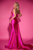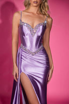 Fitted stretch jersey dress with intricate beading along the neckline and waist. Designed with a side skirt seamlessly integrated into the dress. This dress has high stretch.