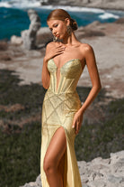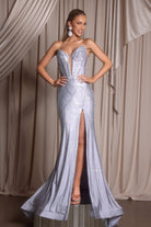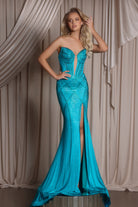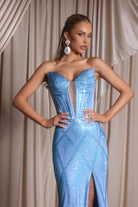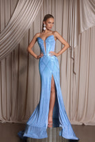 PS26013 features a sweetheart neckline with an illusion plunge that beautifully accentuates the d?colletage. The fitted bodice is adorned with intricate bead embellishments that contour the figure. Designed to highlight every curve, the gown transitions into a sleek mermaid-style skirt that flares elegantly at the hem and has a daring front slit.