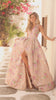 Style PS26091 brings together classic femininity and garden-inspired romance in a breath taking display of design. The gown features a deep V-neckline with structured shoulders that elongate the frame, while the fitted bodice transitions seamlessly into a voluminous A-line skirt. Crafted from luxurious printed organza, its soft floral motif evokes a sense of timeless beauty and refined elegance. Hidden pockets add a modern touch of practicality, while the full skirt flows gracefully to the floor for a regal finish. Perfect for special occasions, this gown captures effortless sophistication with a touch of natural charm.