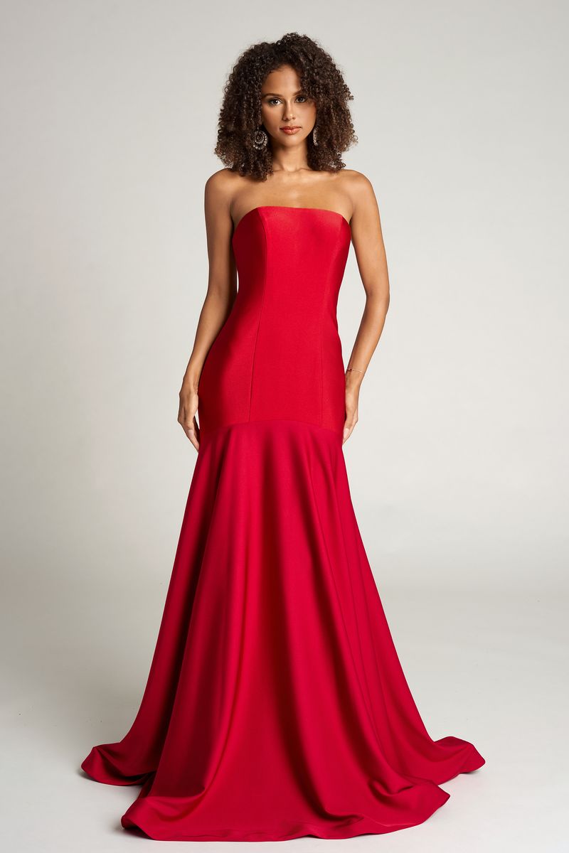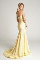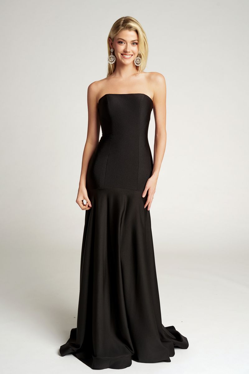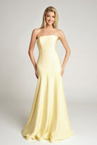 Style PS26101 embodies understated sophistication through a timeless, minimalist silhouette. The strapless neckline and structured bodice create a sleek, sculpted fit that highlights the natural curves, while the smooth fabric drapes effortlessly into a gentle mermaid skirt. Flowing into a soft train, the gown moves with graceful fluidity, offering elegance without distraction. Perfect for those who appreciate refined simplicity.