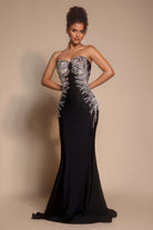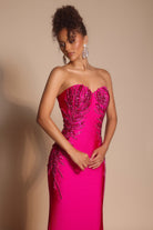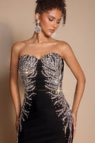 Style PS26331E captivates with timeless elegance and a refined, sculpted silhouette. The strapless sweetheart neckline highlights the d?colletage, while intricate beadwork along the bodice and sides creates a flattering, hourglass illusion. Crafted from a smooth, figure-hugging fabric, the gown flows seamlessly into a graceful floor-length skirt with a soft train for added sophistication. Perfect for evening galas or formal events, this gown embodies understated luxury and confident allure.